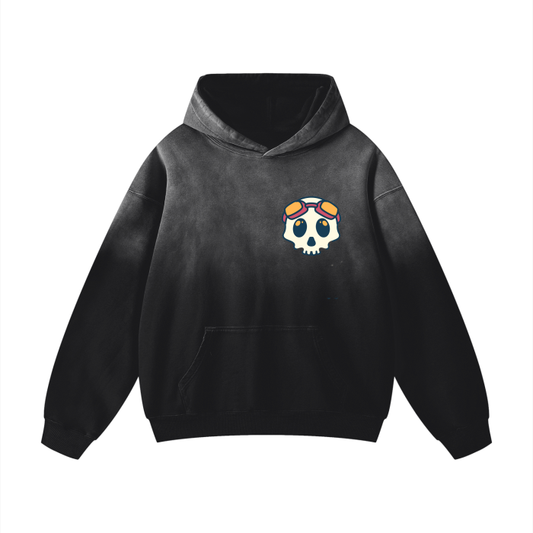 "Motorcycle Skull" Heavyweight Pure Cotton Handcrafted Monkey Wash Drop Shoulder Oversized Hoodie