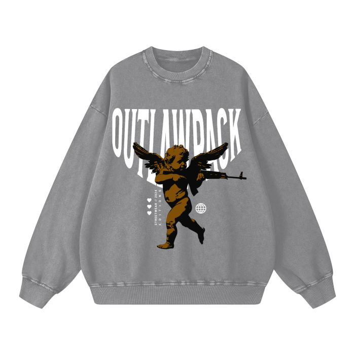 "Thug Angel" Acid Wash Oversize Sweatshirt - 360 GSM
