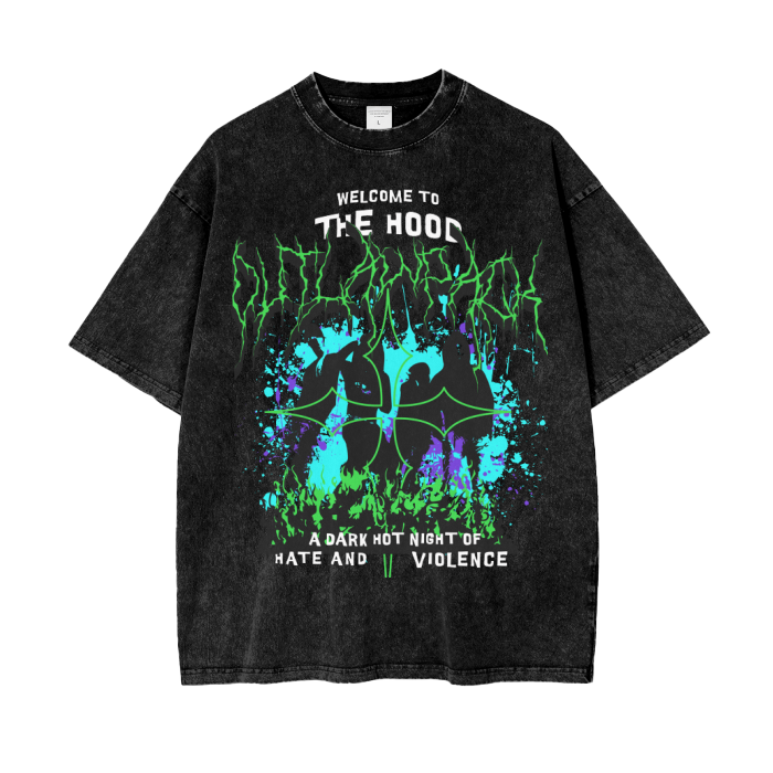 "Welcome to the hood" Acid Wash Oversize T-Shirt - 250 GSM