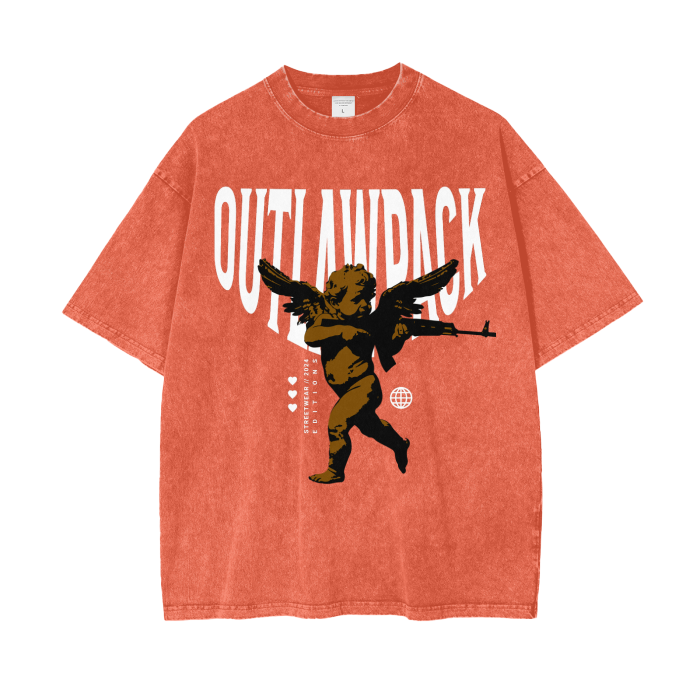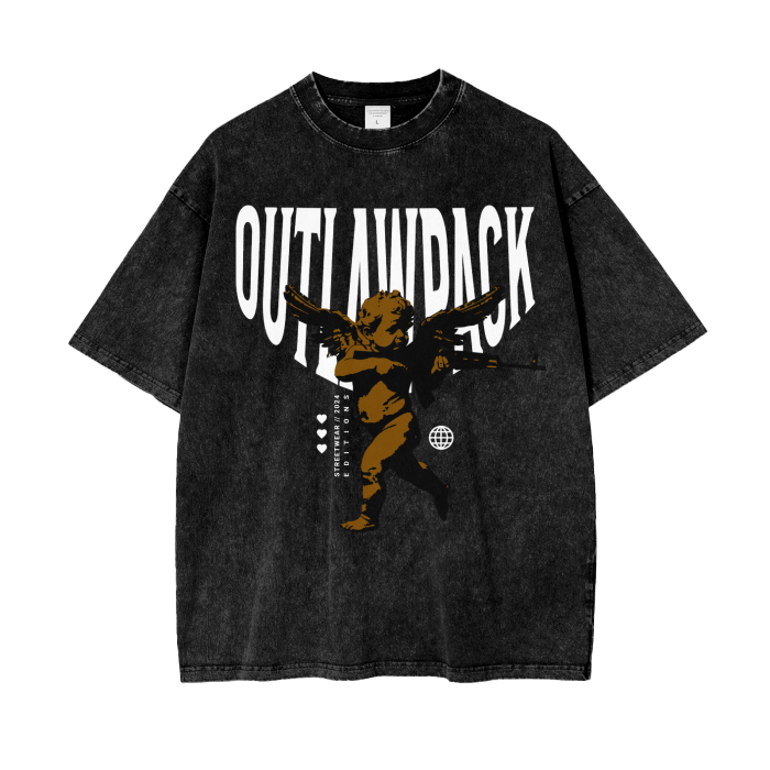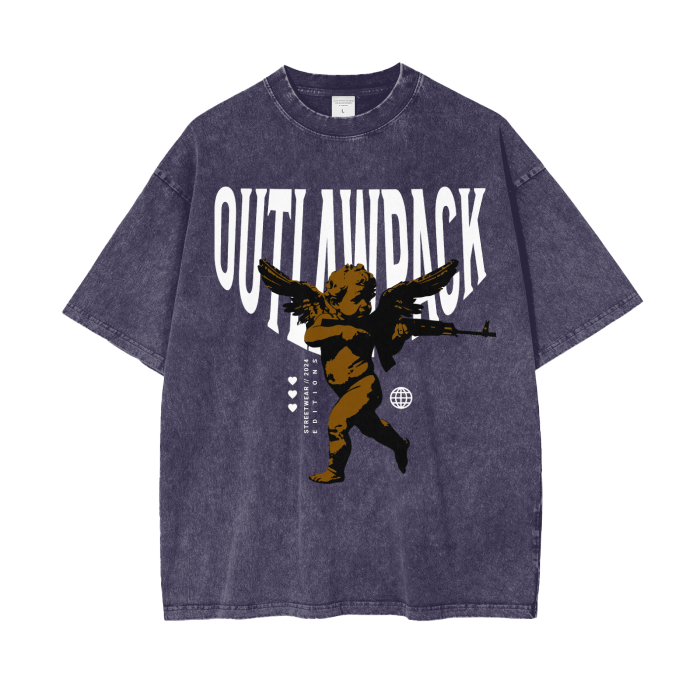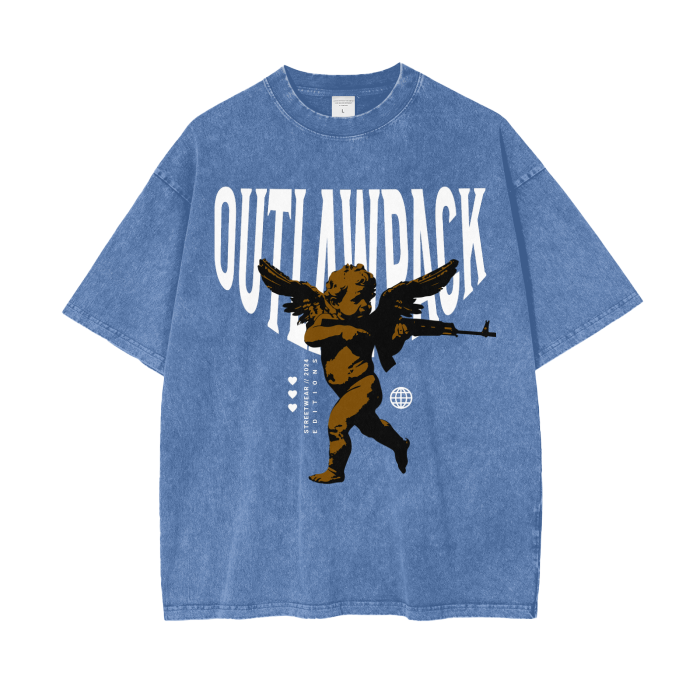 "Thug Angel" Acid Wash Oversize T-Shirt - 250 GSM