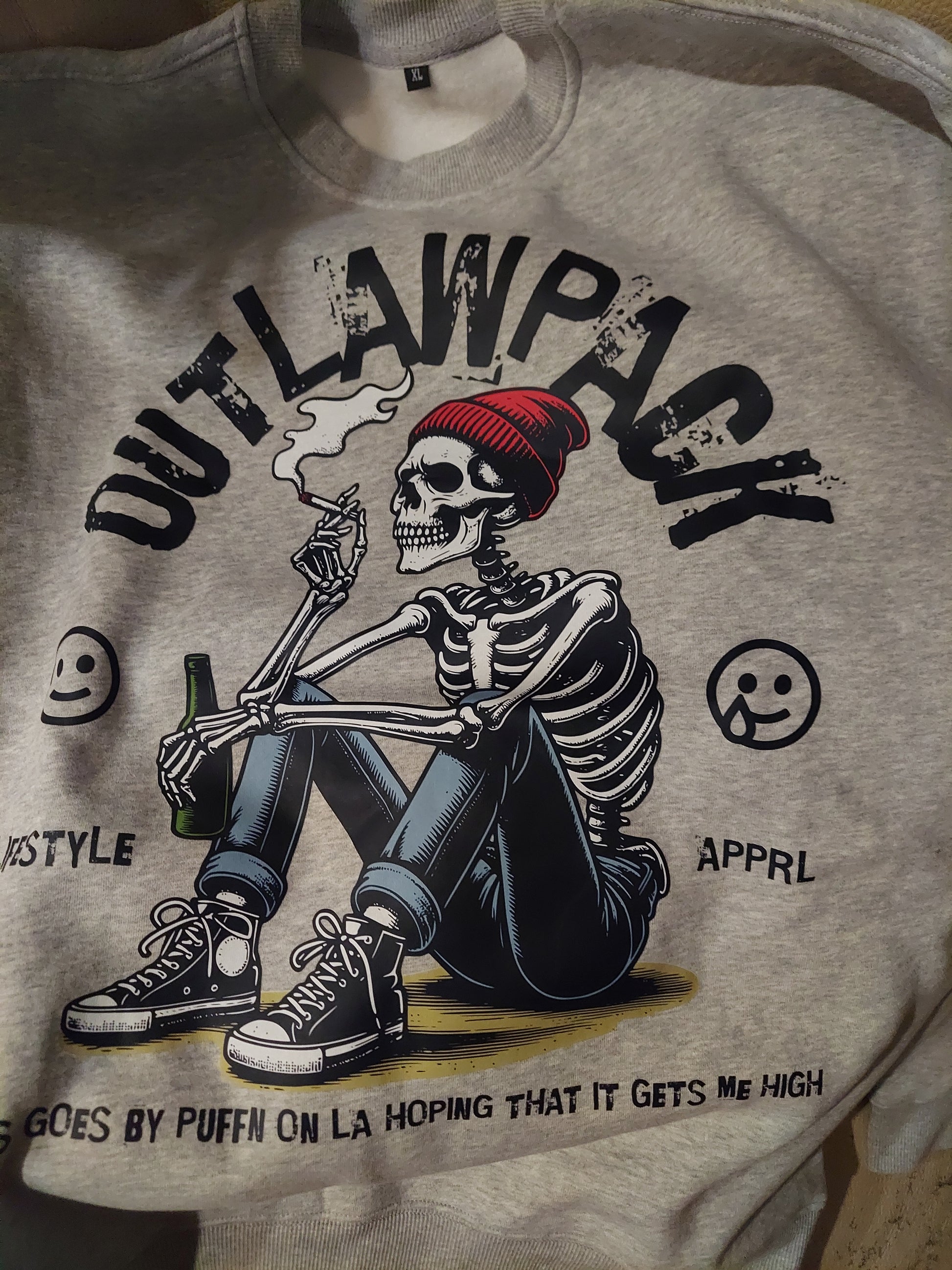 "Puffn on La" Streetwear Unisex Solid Color Fleece Pullover