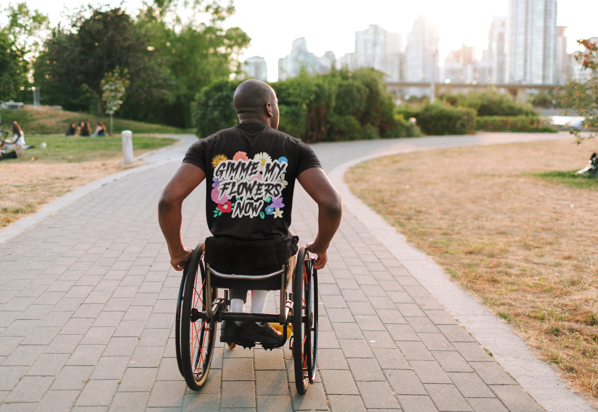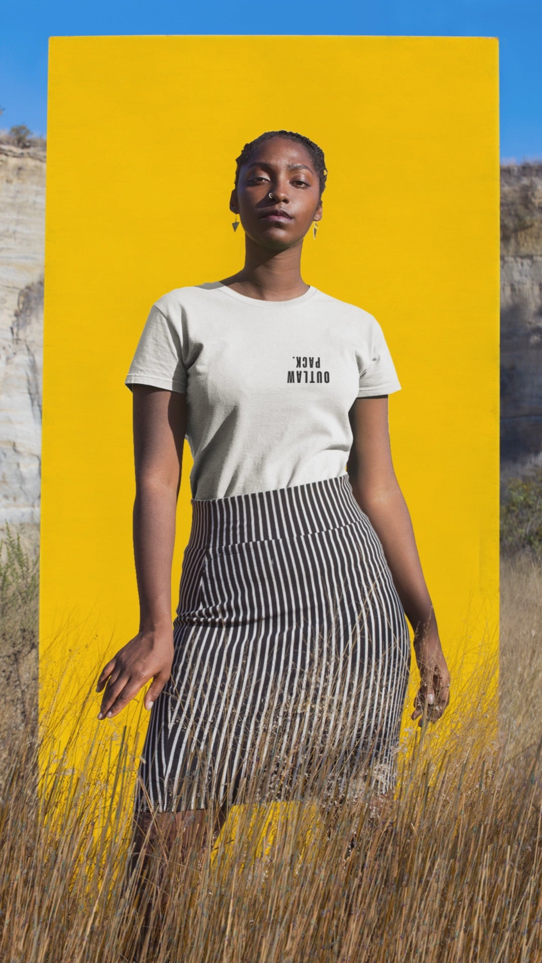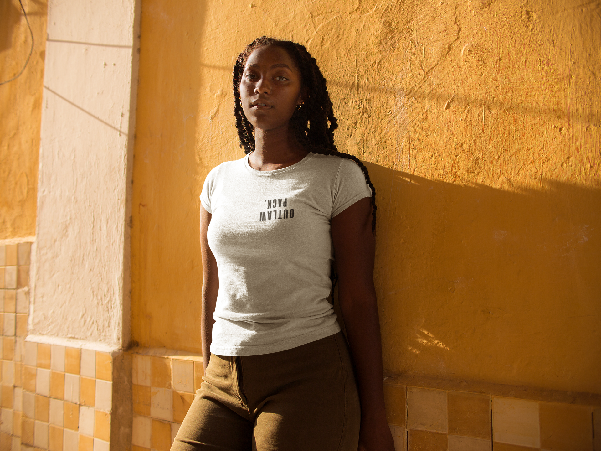 Cotton T with Outlawpack logo on front and flowers logo on back